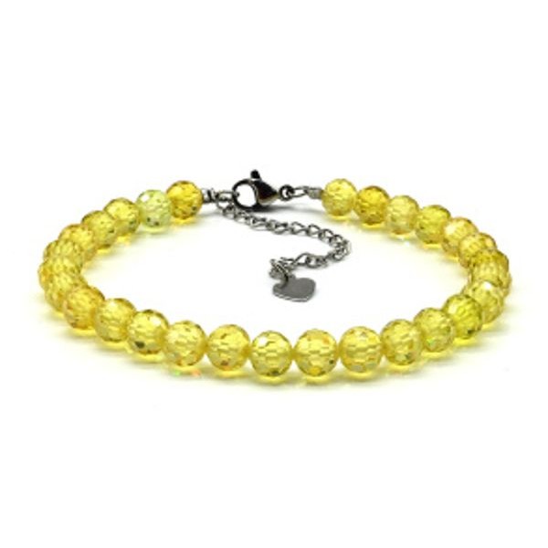 Браслет из фианитов шарик гр.6мм цвет желтый, 18см (иск.)
