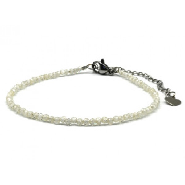 • Браслет из фианитов шарик гр.2мм цвет шампань, 17см (иск.)