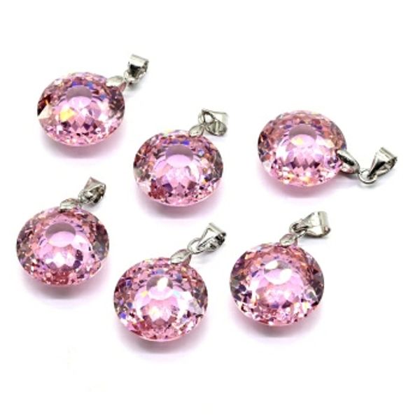 • Кулон из фианита круг 15мм, цвет розовый (иск.)