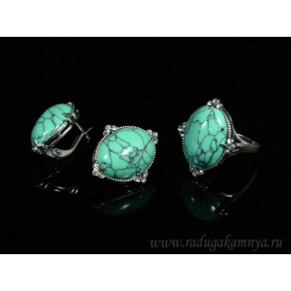 Кольцо и серьги с бирюзой (имитация) .