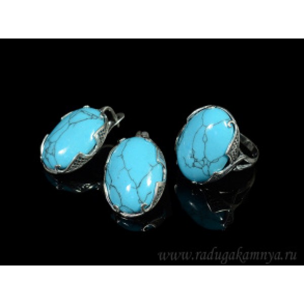 Кольцо и серьги с бирюзой (имитация) .