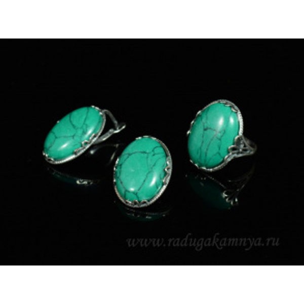 Кольцо и серьги с бирюзой (имитация) .