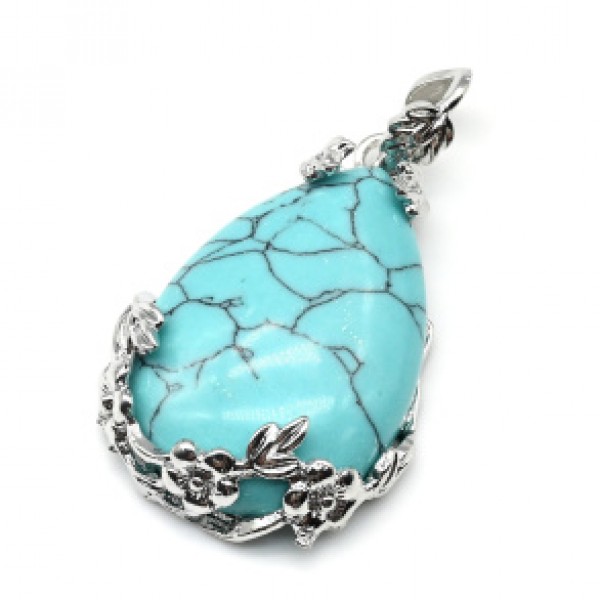 Кулон с бирюзой в металле капля 30*40мм (иск.)