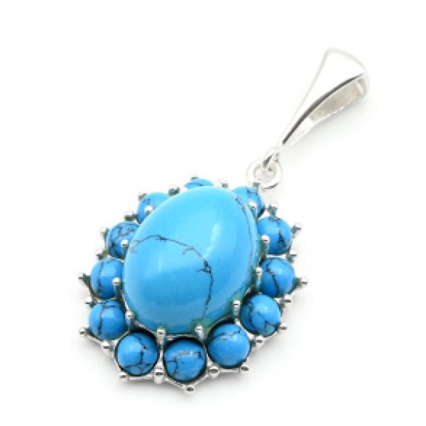 Кулон С 925 с бирюзой (имитация) овал в шариках 21*24мм, 6,25гр (иск.)