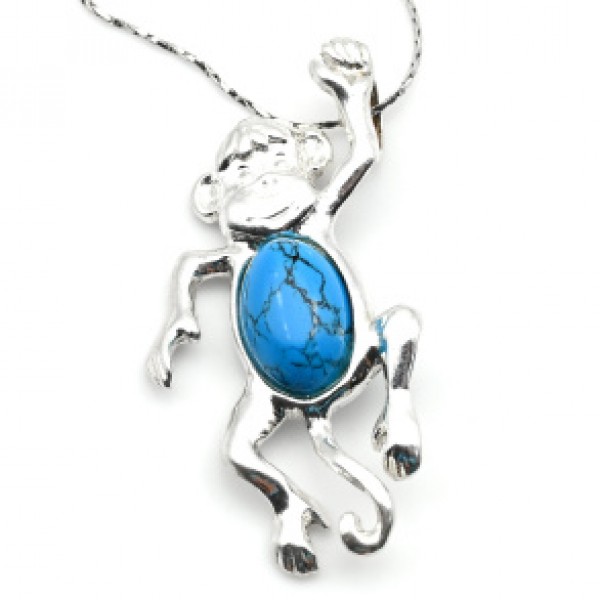 Кулон С 925 с бирюзой (имитация) "Обезьянка Чи-Чи-Чи" 21*38мм, 5,11гр (иск.)