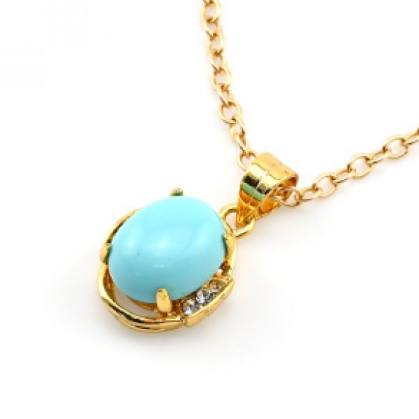 Кулон с позолотой "Овал" из бирюзы (имитация) со стразами (иск.)
