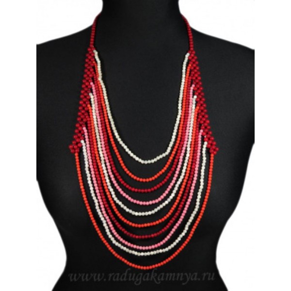 Колье из коралла ассорти 10нитей с перламутром шарик 5-4мм, 64см