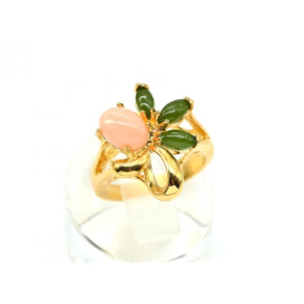 Кольцо женское коралл с нефритом