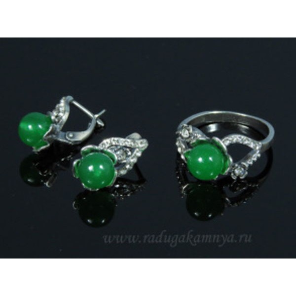 Кольцо и серьги с кварцем (имитация хризопраза)