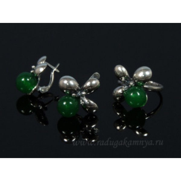 Кольцо и серьги с кварцем (имитация хризопраза) .