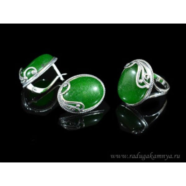 Кольцо и серьги с кварцем (имитация хризопраза)