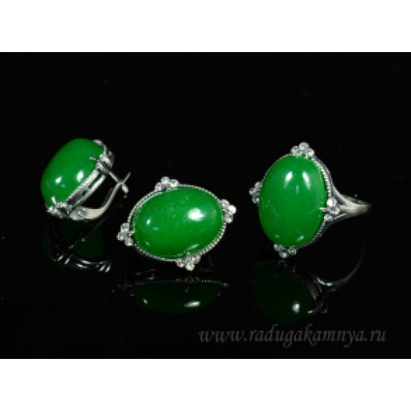 Кольцо и серьги с кварцем (имитация хризопраза) .