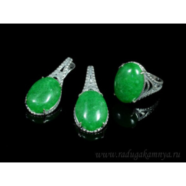 Кольцо и серьги с кварцем (имитация хризопраза) .