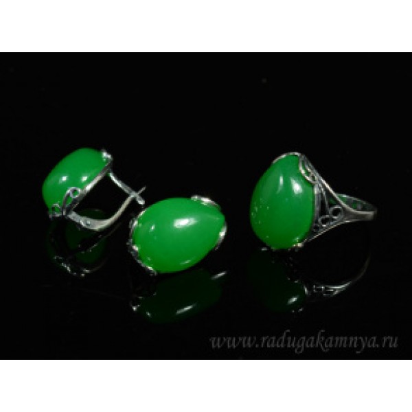 Кольцо и серьги с кварцем (имитация хризопраза)