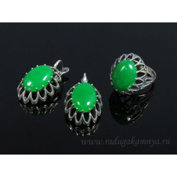 • Кольцо и серьги с кварцем (имитация хризопраза)