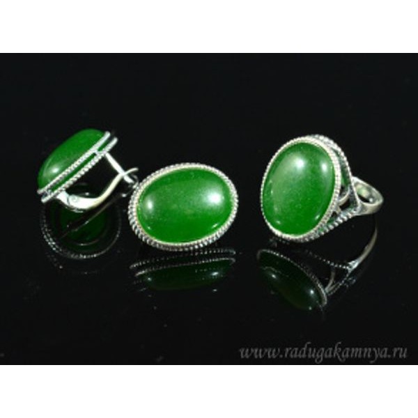 • Кольцо и серьги с кварцем (имитация хризопраза)