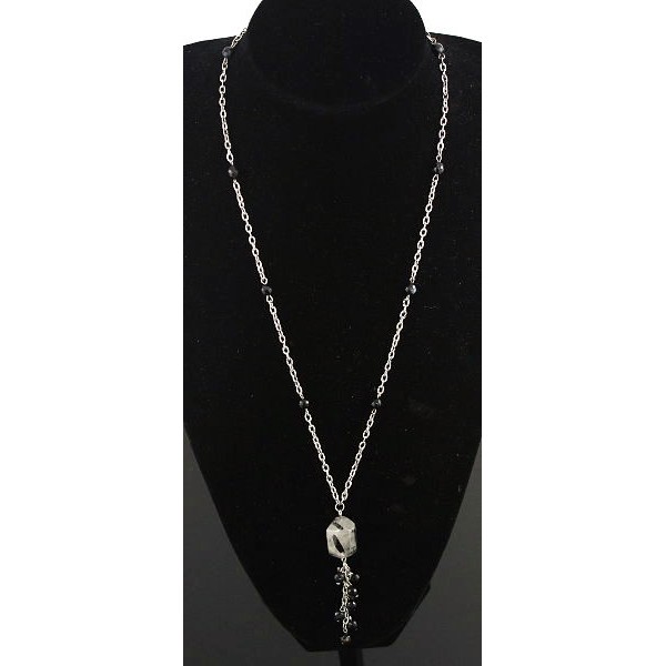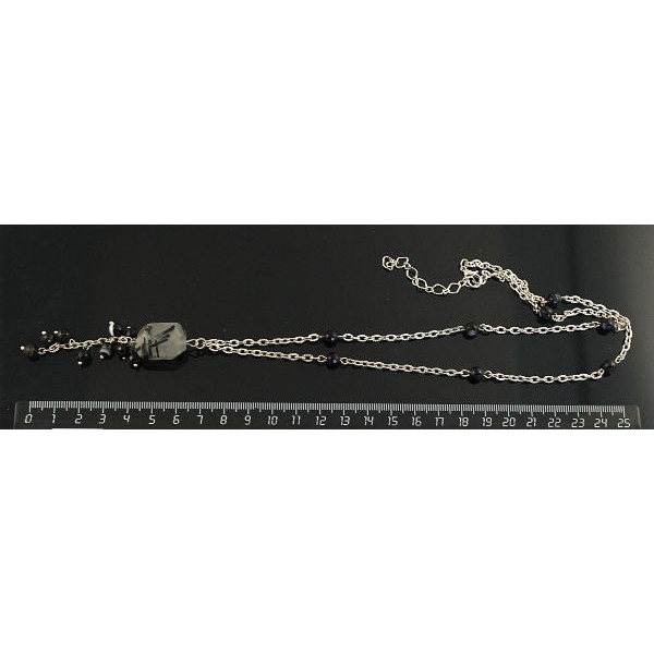 Колье-цепочка из кварца-волосатика, бусина крупная огранка + агат черный шарик 6мм