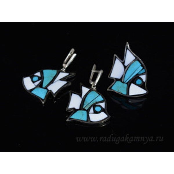 sg11-00412, sg11, sg11-, 11-, 11-00412, кольцо_и_серьги_мозаика_"рыбки"_из_бирюзы, мозаика, бирюза, серьги_бирюза, рыбка
