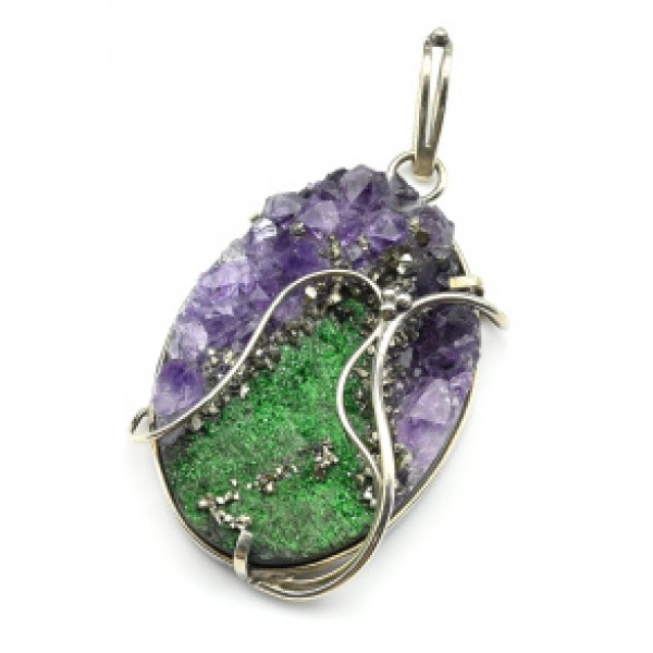 Кулон из аметиста, уваровита и пирита 30*45мм.