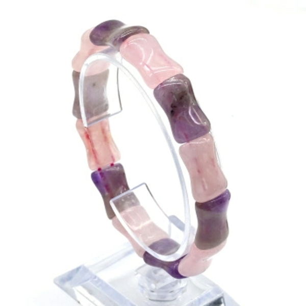 • Браслет косточка 12*16мм из аметиста и розового кварца