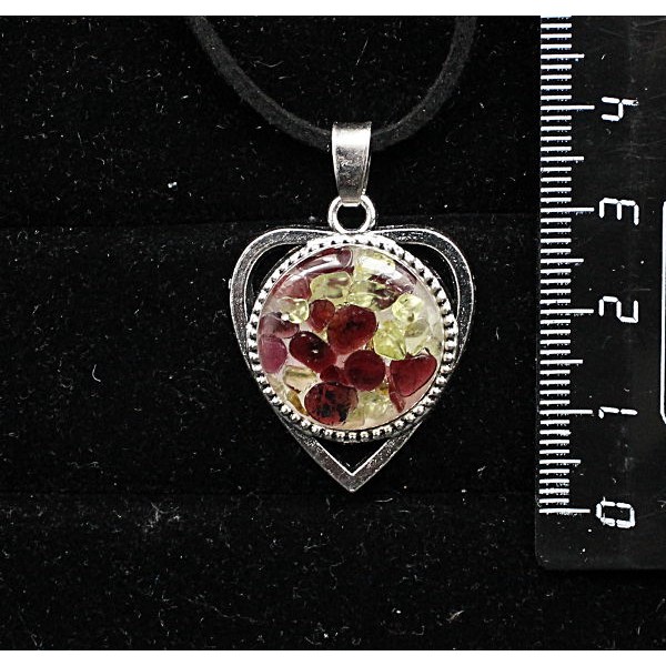 • Кулон из хризолита и граната (кабошон-мозаика), круг 18мм, оправа "сердечко"