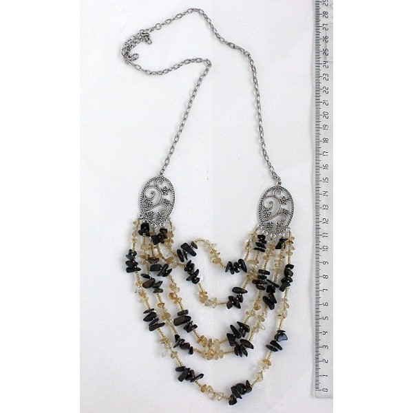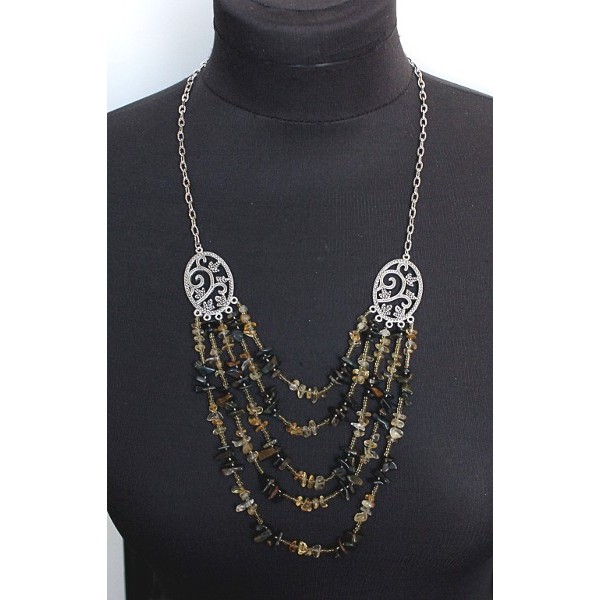 Бусы из цитрина и соколиного глаза, 5 нитей, коннектор "плющ"