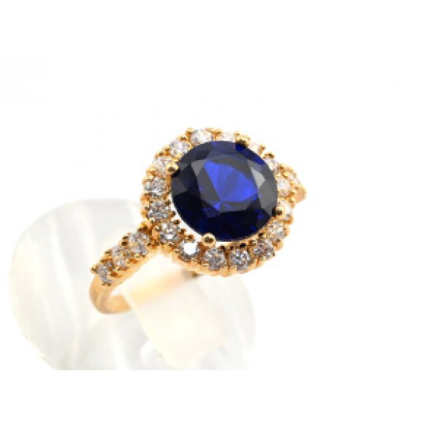 Кольцо циркон синий круг в цирконах (иск.)