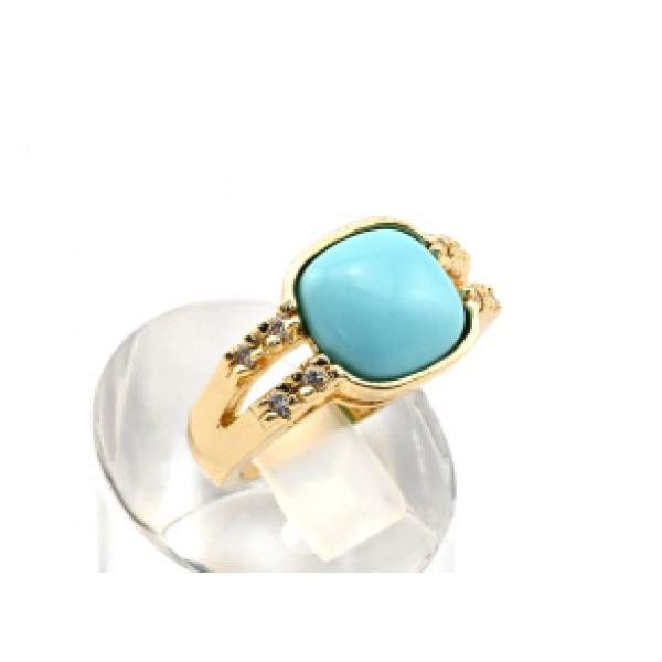 • Кольцо позолоченное с бирюзой (имитация) "Шарм",  (иск.)