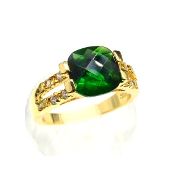Кольцо с позолотой "Шарм" циркон зелёный, (иск.)