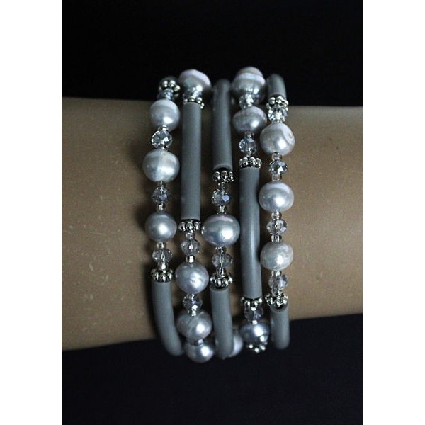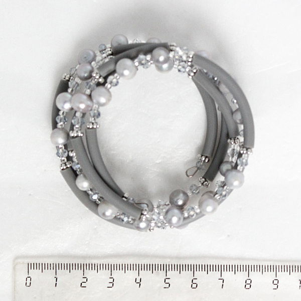 Браслет из жемчуга серебристого, 5 оборотов, шарик до 8мм, с трубочками