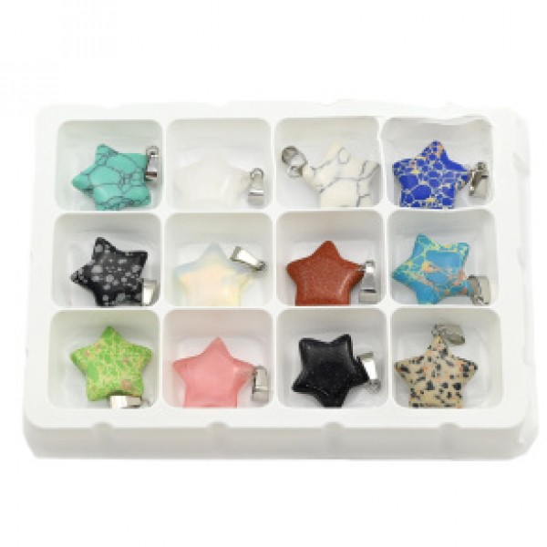 Набор кулонов Звезда 12 штук из самоцветов, 20*20мм