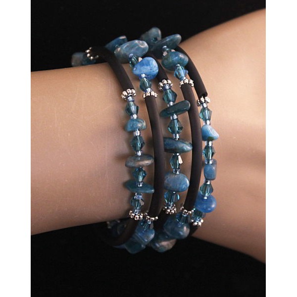 Браслет из апатита на струнке, 5 оборотов, галтовка с трубочками