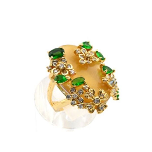 Кольцо с раухтопазом "флора", огранка, +эмаль.&..
