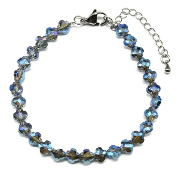 • Браслет из циркона клевер 6мм цвет синий, 18см (иск.)