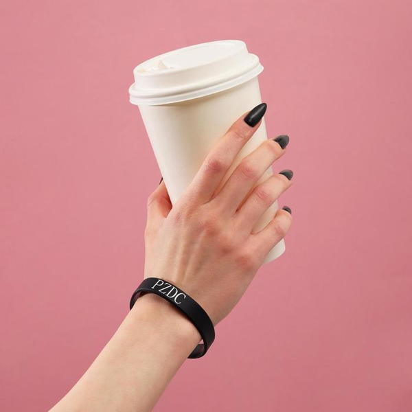 • Силиконовый браслет "PZDC" стандарт, цвет чёрный длина 20см