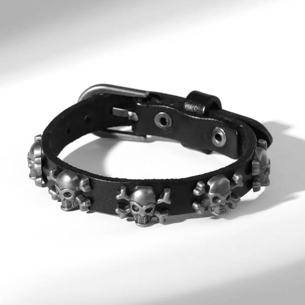 • Браслет кожа "Хардкор" черепа пираты, цвет чёрный, цвет серебристый