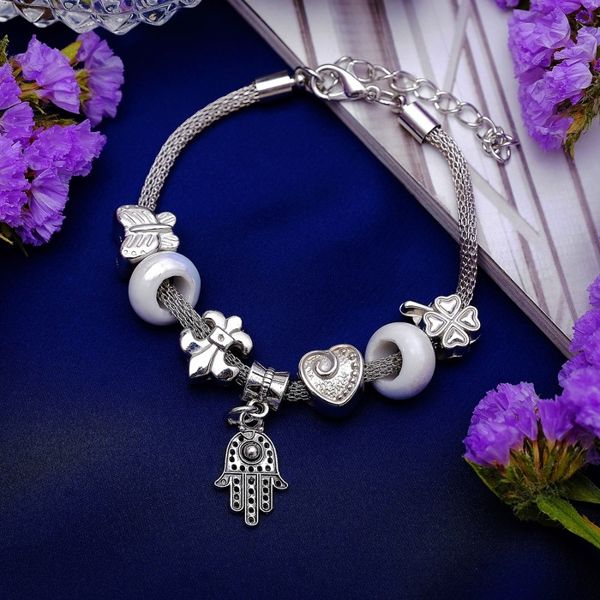 Браслет "Марджери" рука хамса, цвет белый, цвет серебристый (стекло, бижутерный сплав)