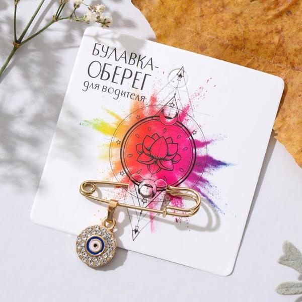 Булавка-оберег "Медальон" глаз, 3см, цвет бело-синий, цвет золотистый