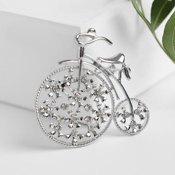 Брошь "Велосипед" ретро, цвет белый, цвет серебристый