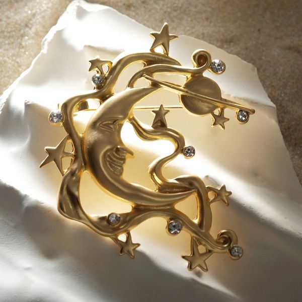 Брошь "Космос", цвет белый в матовом золоте