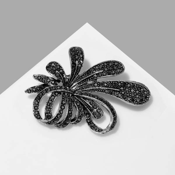 Брошь "Завиток" из листьев, цвет серый, цвет серебристый