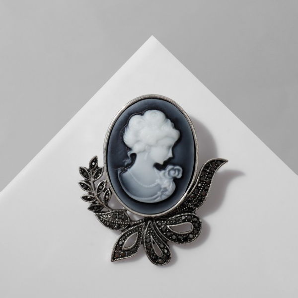 Брошь "Камея" загадка, цвет бело-голубой, цвет сер..
