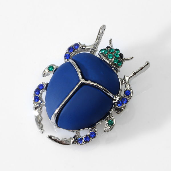 Брошь "Жук" скарабей, цвет матово-синий, цвет серебристый