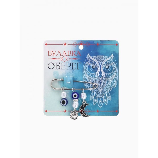 Булавка оберег «На счастье и удачу», 5 см, синяя, цвет серебристый