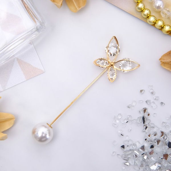 Булавка "Бабочка" объемная, 7,5см, цвет белый, цвет золотистый