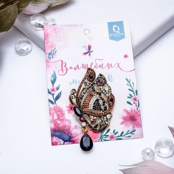 Брошь "Бабочка" винтаж, цвет коричневый в черненом золоте (стразы)