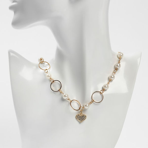Колье с жемчугом "Сердце" в круглых звеньях, d=0,6см, цвет белый, цвет золотистый, 40 см