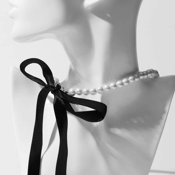 Колье-чокер "Новый стиль" жемчужины с завязкой, цвет черно-белый 40 см
