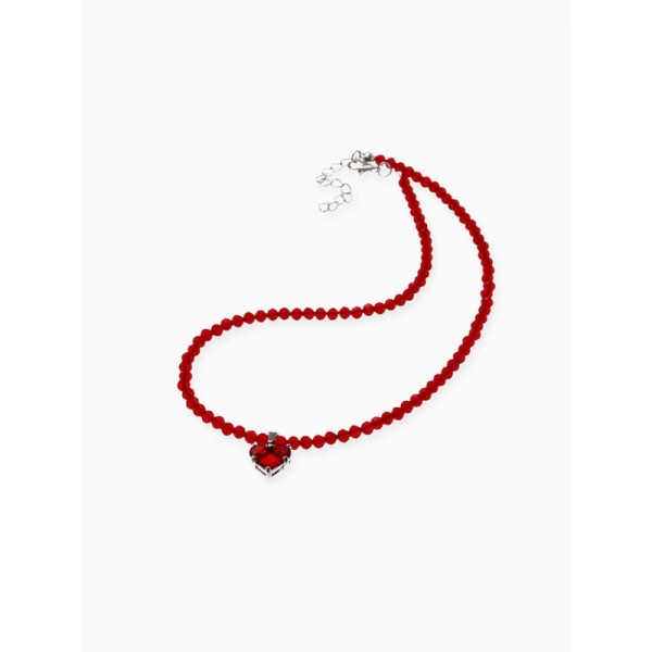 Колье-чокер из бисера «Хрусталь» сердце, красный, цвет серебристый, 37 см + 5 см доп, цепочка