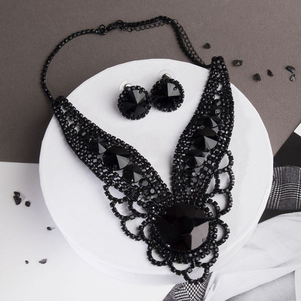 Комплект: серьги, колье "Вернисаж" круг ажурный, цвет чёрный (стекло, стразы)